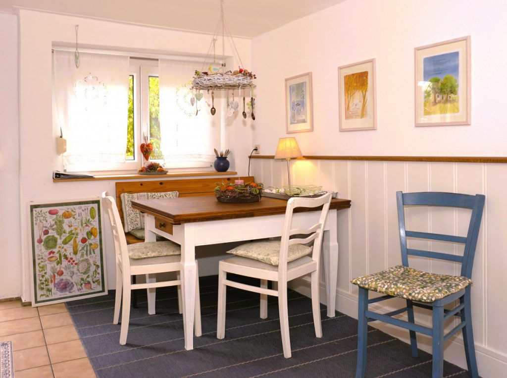 - Voll ausgestattete Küche mit Elektroherd (Cerankochfeld), Backofen, Dunstabzug, Kühlschrank, Toaster, Kaffeemaschine, Wasserkocher, Spülmaschine, ausreichend Geschirr und Besteck für 4 Personen und gemütlichem Essbereich.